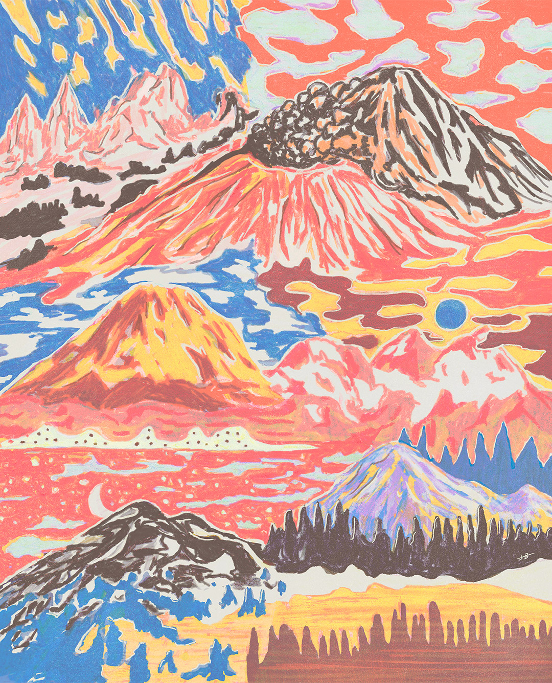 The task consisted on making 3 different illustrations inspired by mountains, flowers, and oceans, respectively.